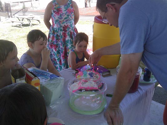 These are no expert photo shots but this is the record I have of my oldest daughter's 7th birthday! One more year and she gets baptized! We had a party with her friends at a spray park (pics below), but as is our tradition, Grammy baked her a cake and we had a mini family party after Sunday dinner! Anna got all kinds of nice gifts that I think she helped shop for! Grandparents are the best! Happy birthday Anna!