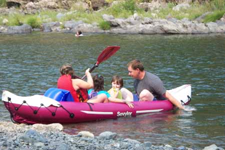 We often pile into the Bell family van and ride with Dudley Bell (better known as Dad-dad) off on an adventure! This was a week or two after my birthday (the day I wanted to go) out on the Illinois river. We drive way down a windy, one lane, dirt road with a mountain on one side and a sheer drop into the river on the other. I hate the drive, I have car phobias, but I love the outing. And of course the photo opp is unparalleled! Here are some pics of my kids in their "floatie" swim suits, making friends with folks and fish alike. Enjoy!
