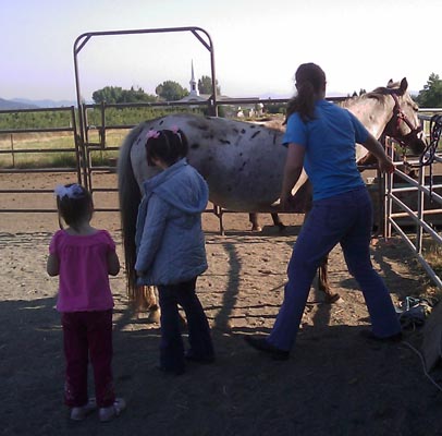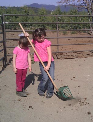 So, I have a friend who is giving my girls horse ridding lessons at an unbelievable rate. Really, she is just giving them to us for a penance and a little work around the farm. Anna is the one who is getting the lessons, but sometimes I take Ben and Katie along to pet the horse or feed the goats. Anna and I have even milked the goats. Both Katie and Anna have had a turn ridding the horses. they love it and even fight over who scoops the poop! Here are some photos, but getting them to pose, or look at me was hard. They were having too much fun!