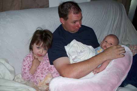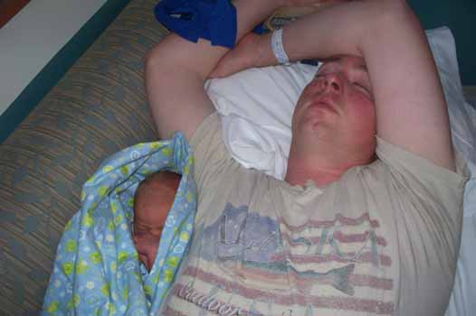 Daniel holding baby Ben, Daniel and Ben at one day old.