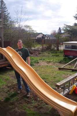Daniel was impressed with Anna's fundraising efforts aimed at getting a "play ground" in our yard so he found someone giving one away. He took it apart and put it up in the back yard for them.