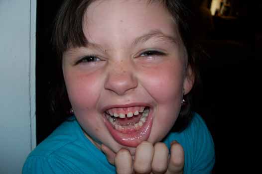 On August 7th Anna willingly posed for a shot of her new front teeth coming in where her baby teeth came out!
